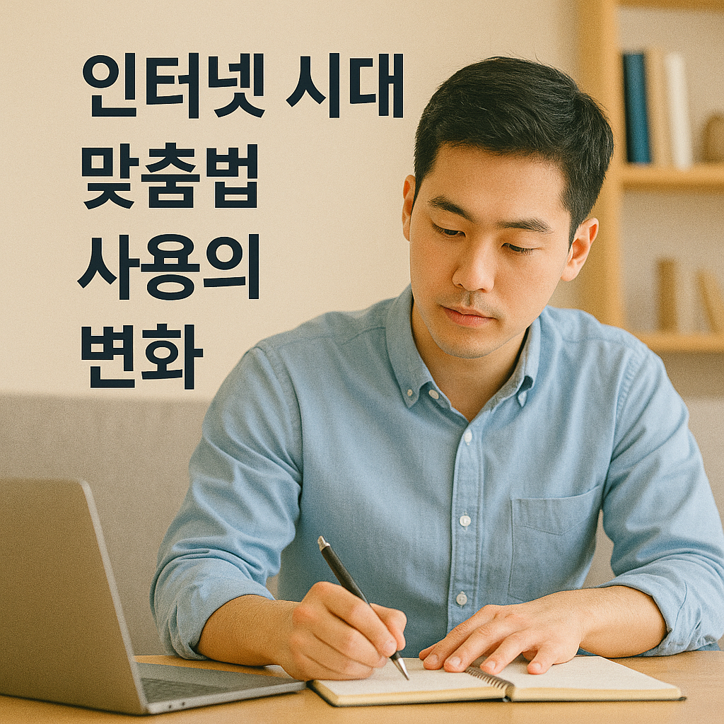 “한글 맞춤법 변화사 속에서 인터넷 시대는 맞춤법 사용에 어떤 변화를 일으켰을까요? 디지털 소통, 축약어, 비표준어 확산, 그리고 언중의 언어 습관을 중심으로 맞춤법 변화의 양상을 살펴봅니다.” [목차]한글 맞춤법 변화사와 인터넷 시대의 만남1-1. 인터넷 언어의 등장 배경1-2. 디지털 환경이 맞춤법에 끼친 영향인터넷 시대 맞춤법 사용 변화의 구체적 사례2-1. 축약어와 신조어의 확산2-2. 비표준어 사용의 보편화인터넷 시대 맞춤법 변화가 갖는 의미3-1. 언중 중심 언어 사용과 규범의 괴리3-2. 언어 문화의 민주화와 맞춤법 변화한글 맞춤법 변화사가 주는 시사점4-1. 인터넷 언어와 국어 교육의 과제4-2. 미래 맞춤법 개정에서 고려해야 할 방향 1. 한글 맞춤법 변화사와 인터넷 시대의 만남 한글..